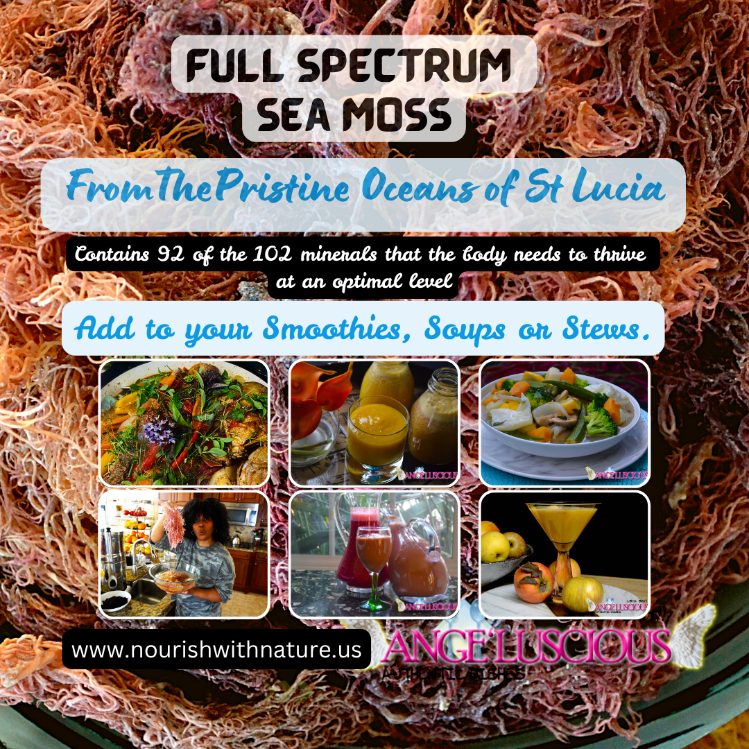 Our Wild Crafted Sea Moss is naturally grown and harvested from the pristine oceans of St Lucia. Angeluscious Herbals organic sea moss has been nourished by the ocean and sun dried by our deep divers. As you can see, there is very little debris which rinses out easily. Color variations of gold and white are noticeably and is due to the sea moss being harvested from its natural habitat…as nature intended. Sea Moss has a very long shelf life if stored properly.